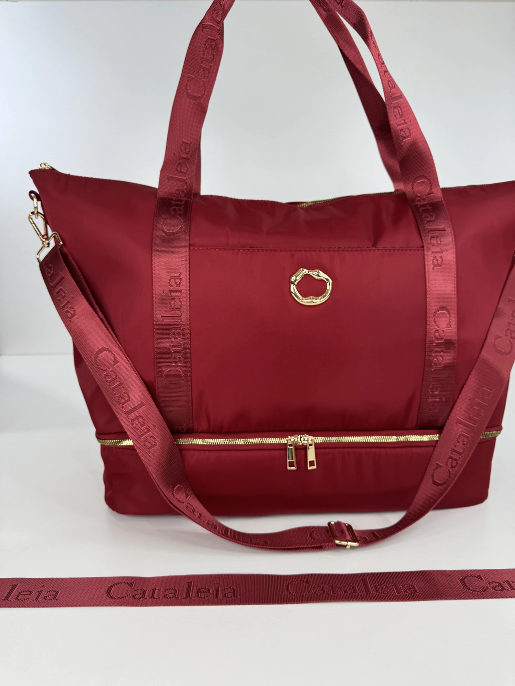 [DESCRIPCION] Presentamos el Bolso Travel Mood Cherry By Cataleia, la elección perfecta para quienes buscan combinar elegancia, practicidad y funcionalidad en cada viaje. Confeccionado en resistente nylon, este bolso de viaje se destaca por su amplio tamaño, ideal para llevar todo lo que necesitás en tus escapadas o aventuras urbanas. Su diseño inteligente incluye un compartimiento principal con cierre de cremallera, asegurando el resguardo de tus pertenencias más importantes. Para mayor organización, cuenta con dos compartimientos extra externos y dos compartimientos internos, permitiendo separar tus objetos personales y acceder a ellos con facilidad. Además, su compartimiento inferior es perfecto, por ejemplo, para guardar calzado o prendas que preferís mantener separadas. El Bolso Travel Mood Cherry suma detalles pensados para tu comodidad: asas resistentes y una correa desmontable y regulable que se adapta a tu estilo de uso, ya sea en la mano o al hombro. La forrería interna personalizada realza el acabado premium, mientras que el detalle de avíos y el distintivo de la marca en color oro aportan un toque sofisticado y moderno. Transformá tu experiencia de viaje con un bolso que resalta por su versatilidad, diseño exclusivo y calidad.
