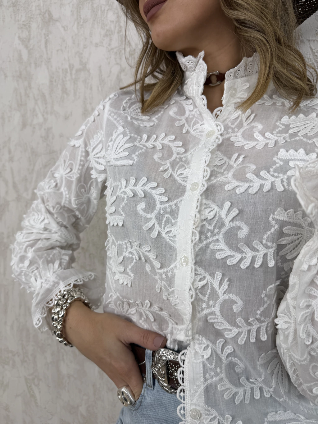 [DESCRIPCION] Presentamos la Camisa Oliver de nuestra Colección Importados By Cataleia, una prenda que combina elegancia y estilo para realzar cualquier look. Confeccionada en batista de algodón bordado en todo su diseño, esta camisa ofrece una textura única y un acabado sofisticado, ideal para quienes valoran la calidad y el estilo. El cierre frontal con botones de acrílico aporta practicidad y un toque moderno, mientras que el cuello mao suma distinción y versatilidad. Sus mangas largas, acabadas en elástico, aseguran un calce cómodo y favorecedor, adaptándose a cada movimiento. El delicado detalle de pasamanería en las terminaciones convierte a la Camisa Oliver en una pieza especial para tu guardarropa.