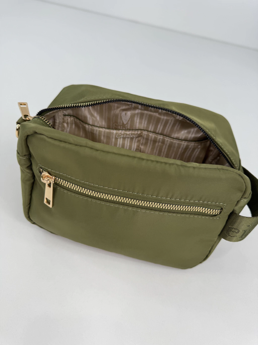 [DESCRIPCION] Presentamos la Cartuchera Mood Moss By Cataleia, una pieza que combina estilo, funcionalidad y detalles exclusivos para acompañarte en tu día a día. Confeccionada en nylon de calidad, esta cartuchera se distingue por ser repelente al agua, asegurando la protección de tus objetos personales en cualquier situación. Su diseño incorpora dos compartimientos externos con cierre de cremallera, ideales para organizar y acceder rápidamente a lo que necesitás. Además, cuenta con dos compartimientos internos que maximizan la practicidad y el orden. Su asa resistente permite transportarla cómodamente, mientras que los detalles de avíos y el distintivo de nuestra marca en color oro realzan su elegancia y la convierten en un accesorio único. La forrería interna personalizada refleja el cuidado en cada acabado, brindando un toque de sofisticación en el interior. La Cartuchera Mood Moss es perfecta para quienes buscan un producto versátil y moderno.