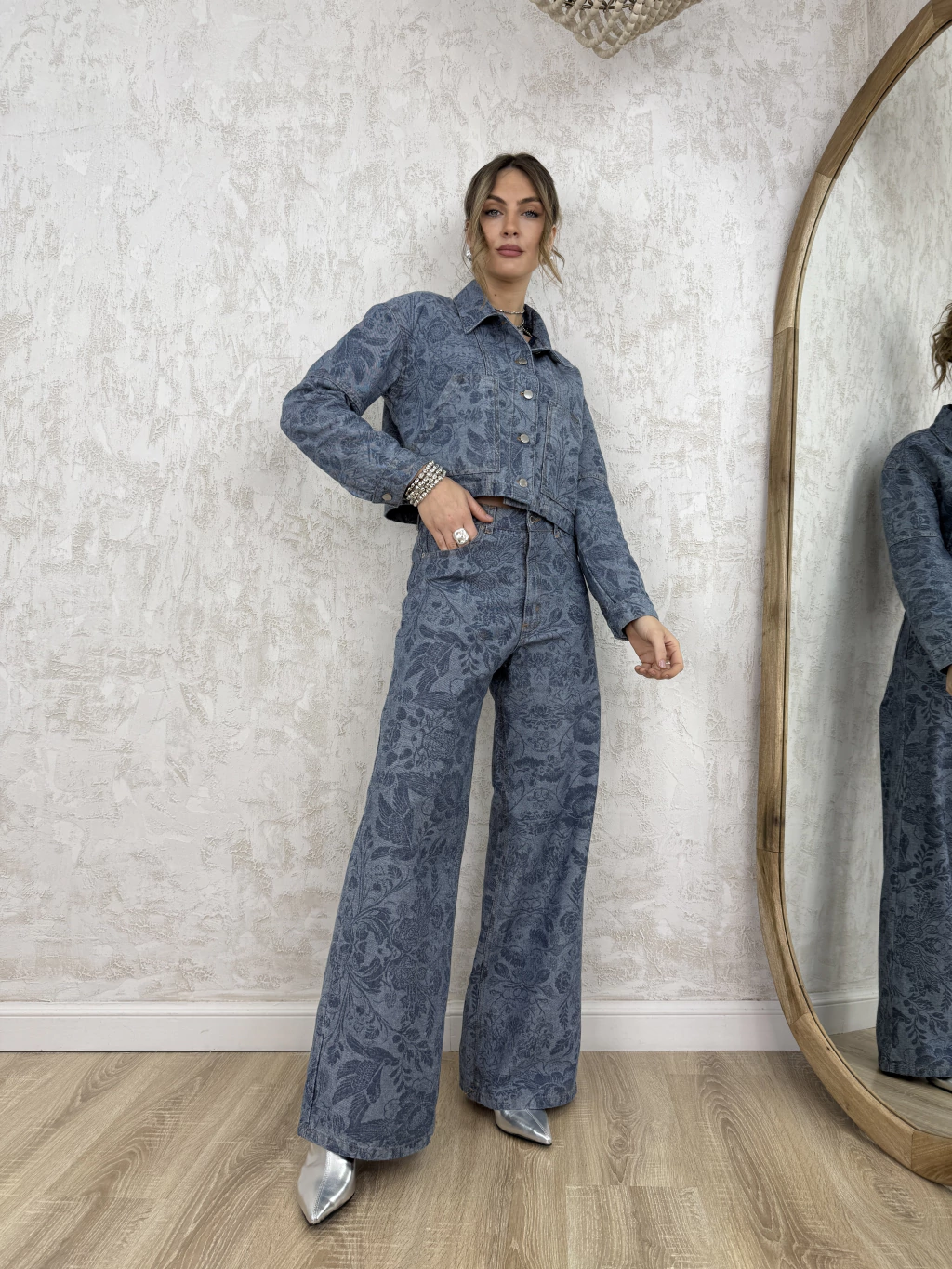 [DESCRIPCION] Presentamos los Jeans Wide Leg Flowers By Cataleia, una prenda que fusiona tendencia, originalidad y el clásico espíritu del denim. Estos jeans, confeccionados en denim rígido, se convierten en el must-have de la temporada para quienes buscan destacar con estilo propio. Su diseño se distingue por la exclusiva estampa con grabado láser de flores, que aporta un toque artístico y sofisticado a una silueta moderna. El corte wide leg garantiza una caída favorecedora y cómoda, realzando el movimiento en cada paso. El modelo incluye cierre con cremallera y botón metálico para mayor seguridad y un acabado prolijo. Los bolsillos en delantero y espalda no solo suman practicidad, sino que también complementan el diseño contemporáneo de estos jeans únicos.