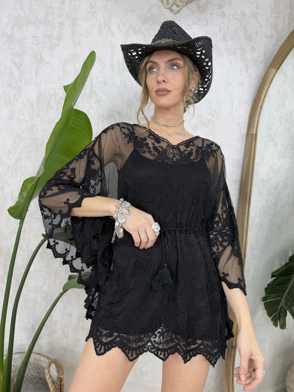 [DESCRIPCION] Descubrí la Túnica Corta Clark de nuestra Colección Importados By Cataleia, una prenda que redefine el encanto y la sofisticación en tu guardarropa. Confeccionada en microtul bordado, un tejido delicado que aporta textura una textura liviana y delicada que realza cualquier ocasión. Su escote en pico aporta un toque moderno y favorecedor, perfecto para quienes buscan versatilidad y distinción en una sola prenda. El cordón en la cintura permite ajustar la prenda a medida, realzando la figura y brindando máxima comodidad durante todo el día. Las mangas sueltas y fluidas tipo murciélago son el detalle distintivo que convierte a esta túnica en una pieza única. Su caída amplia y vaporosa aporta movimiento y un estilo inigualable, ideal para quienes buscan destacar sin esfuerzo.