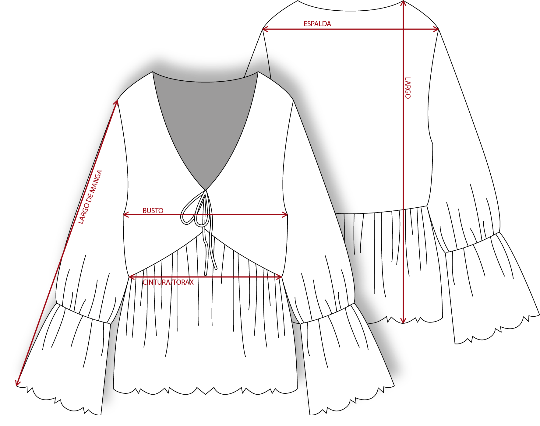 Las medidas de Juli son: Altura 170cm; Contorno busto 90cm; Espalda 37cm; Contorno cintura 65cm; Contorno cadera 97cm.